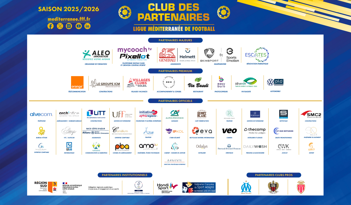 Club des Partenaires | Infos pratiques OFFRE PROMO SUR L’ABONNEMENT PREMIUM Chers clubs, la Ligue Méditerranée de Football et Sportsrégions s’associent afin de constituer un duo d'a...