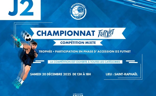 La 2ème journée du Championnat Futnet est programmée samedi 20 décembre (13h00-18h00) au gymnase omnisports 1000 à Saint-Raphaël (Var), en présence de Camille Catala, médaillée de bronze simple du dernier Championnat du Monde !