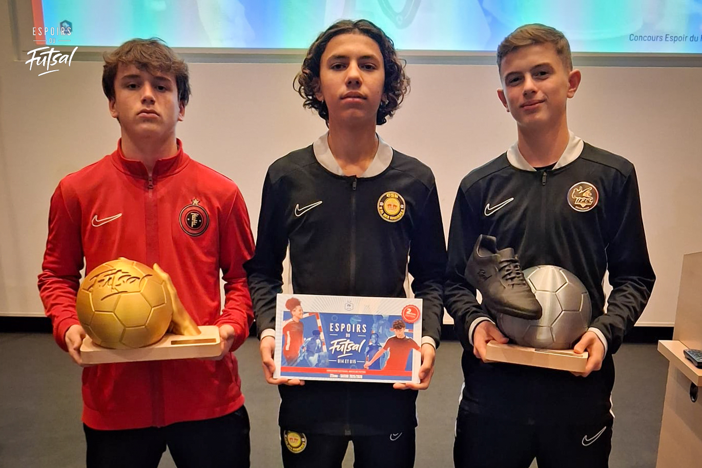 Tous trois issus de la Sélection Régionale U15G Futsal, ces jeunes joueurs, vainqueurs des Interligues U15G Futsal organisées du 17 au 19 avril à Vichy, ont enchaîné avec la phase finale du Concours Espoirs Futsal.