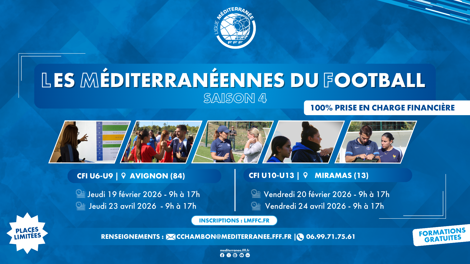 La Ligue Méditerranée de Football poursuit la saison 4 de son dispositif de formation « Les Méditerranéennes du Football » !