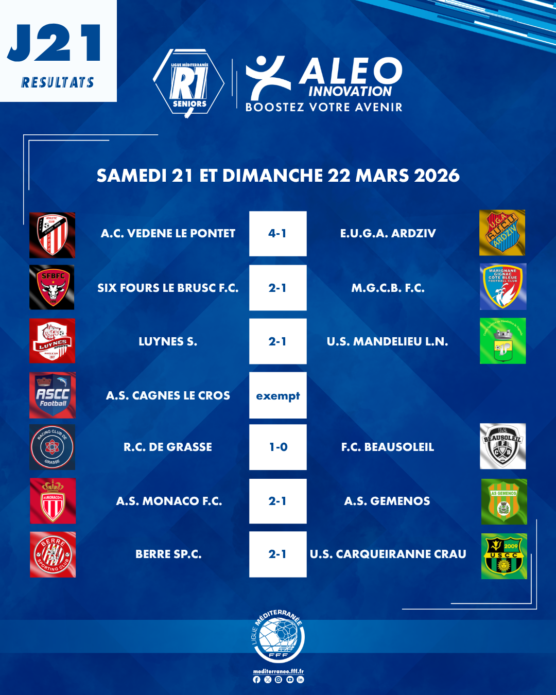 Régional 1 Aleo Innovation (21ème journée) : classement