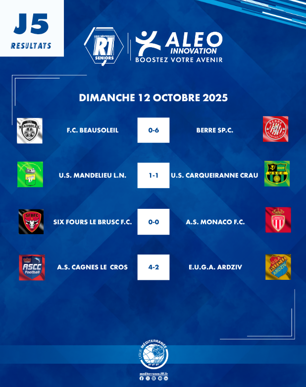 Régional 1 Aleo Innovation (5ème journée) : résultats