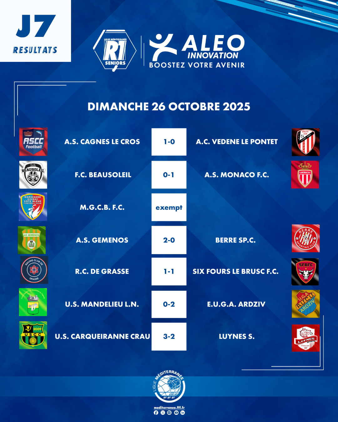 Régional 1 Aleo Innovation (7ème journée) : résultats