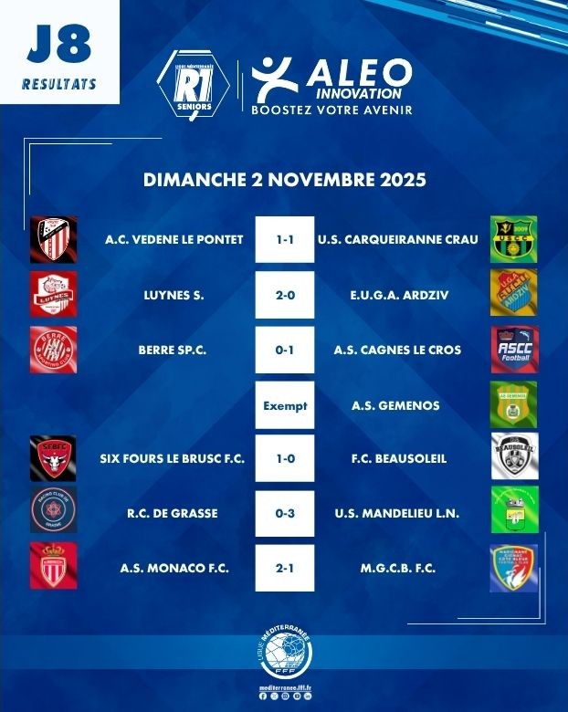 Régional 1 Aleo Innovation (8ème journée) : résultats